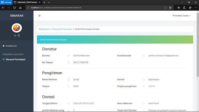 Semua proses pendistribusian makanan dalam sistem aplikasi ini dilakukan secara transparan. Setiap donatur yang melakukan donasi dapat mengetahui di mana makanan dibuat, siapa yang akan mengantar makanan tersebut kepada penerima makanan, progres pengantaran makanan dan detail penerima makanan tersebut (siapa dan di mana lokasinya).